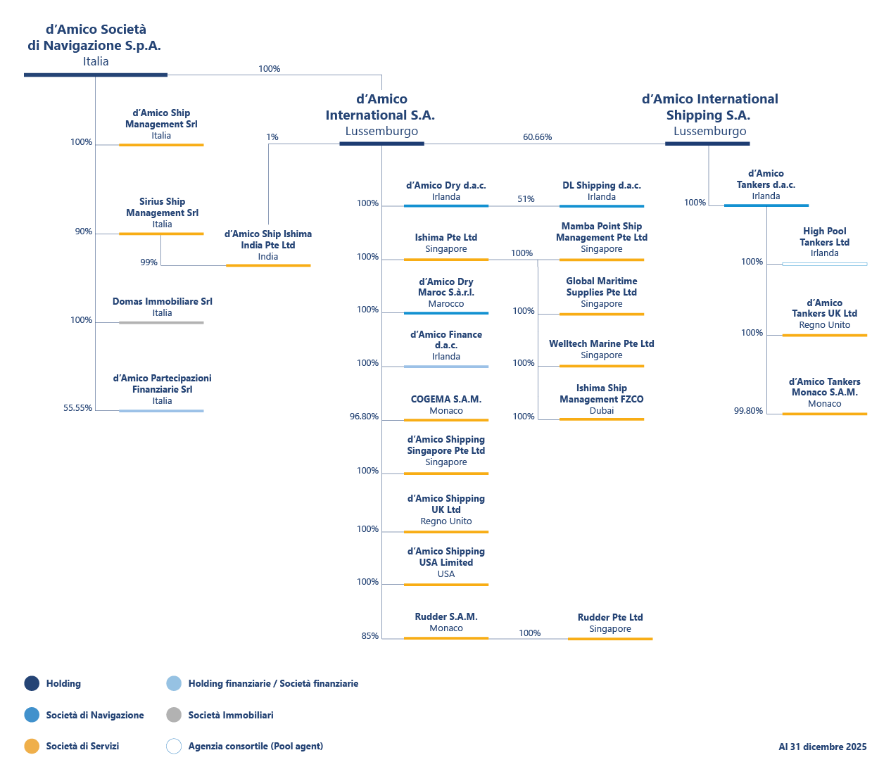 Il Gruppo d’Amico, fondato nel 1952, è tra i leader mondiali nel trasporto marittimo nei settori dry cargo e product tankers, e nei servizi strumentali alle attività di core business. Dispone di una tra le più importanti flotte a livello mondiale di navi portarinfuse e navi cisterna. Con uffici in più di 10 sedi nel mondo, il Gruppo d’Amico impiega oltre 220 dipendenti e coinvolge circa 1120 persone a bordo delle navi. Da sempre la sostenibilità, l’attenzione al cliente e l’eccellenza professionale del proprio personale rappresentano i capisaldi della propria mission e i principi della propria strategia.